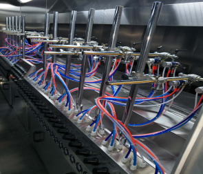 地軌式自動噴涂線也叫固定噴槍噴涂線或spindle自動噴涂線,原理就是把噴槍固定起來,根據工藝要求進行噴涂。其功能集地面自動輸送線,固定自動噴涂,自動烘干T等一體化系統,并結合無塵凈化車間,恒溫控制,廢氣處理系統組成,可以根據需求設計兩涂兩烤,三涂三烤,四涂四烤,再加上UV固化設備。地軌式自動噴涂線特點與優勢:1.起到靜電除塵,噴涂、烘干、UV固化自動噴涂流水的功能,適合批量連續生產,產量高,噴涂均勻。2.輸送鏈條與軌道接觸點配置軸承,配合精準的軌道,運轉時輕快平穩不抖動,3.靜電除塵系統,進口高要靜電發生器,離子風嘴可上下前后機械式調節,可配合產品大小不同而變化,加上工件自動,除塵無360度死角。4.固定式自動噴槍可用于步進是或者聯系的在線噴涂,及簡單又實用。采用工件高速自動噴涂,行程及速度可調節,靈活性大,無死角。5.水簾環保噴房設計,氣流順暢潔凈,噴房室內導流板機擾流板的精心配置,讓亂流遠離工件,并快速循環利用。6.UV固化室內設都說進口等,任意調節照射距離與角度。可以任意選擇燈工作數量,根據照射強度選擇,工件自動旋轉設計,保證了工件照度均勻。好了,以上就是有關地軌式自動噴涂線介紹,大家學會了嗎?
