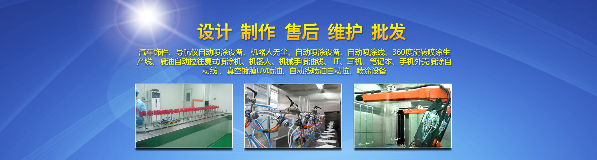 主要生產:機器人自動噴涂、汽車內飾件噴漆設備、Spindle噴漆設備、UV自動噴漆設備自動噴漆生產線、無塵噴漆設備、塑膠外殼全自動噴漆設備等自動化設備。